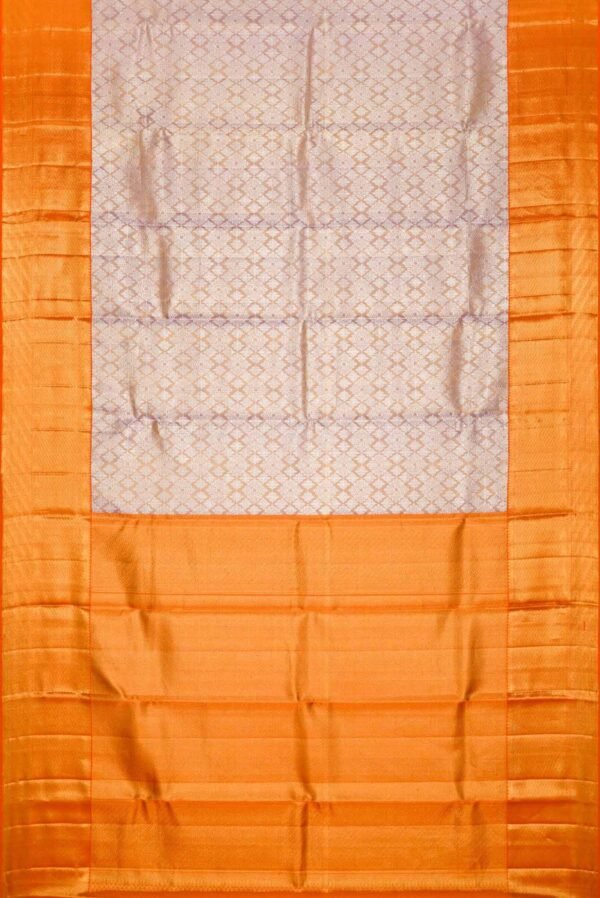Lavender Kanchipuram Tissue Silk Saree with Zari Brocade on the body and Zari Border. Includes unstitched blouse.