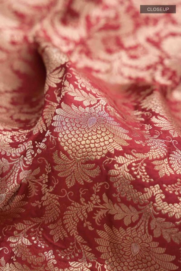 Maroon Banarasi Silk Saree with Zari Brocade on the body and Zari Border. Includes unstitched blouse.